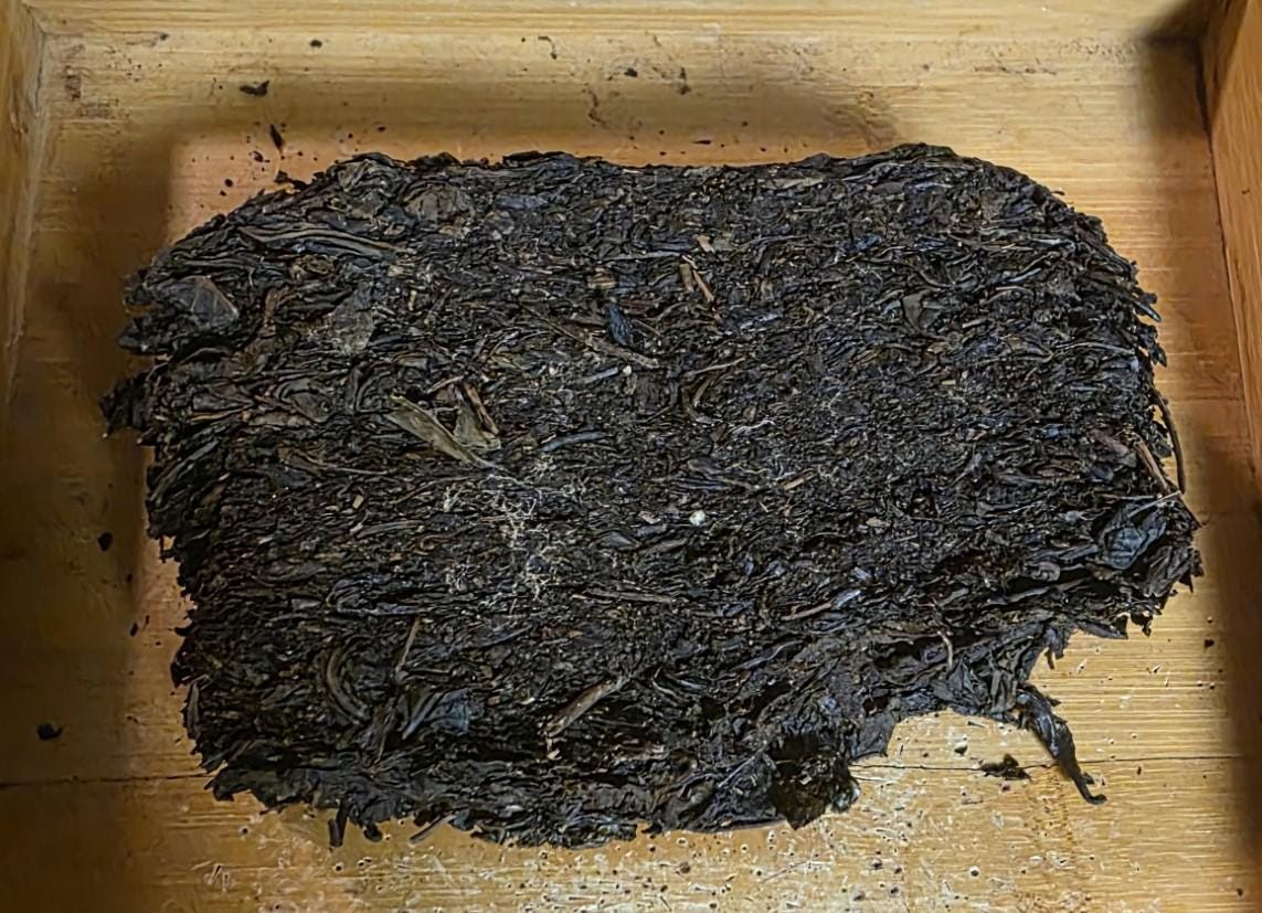 Wuyi rock oolong pressed into bricks... was odd so I had to pick it up. There's a pipeline for bricks so this is for people to try and find out if they want to buy more.